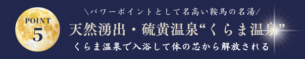 くらま温泉は豊かな自然と由緒ある歴史に囲まれた名湯でそのお湯(水)自体に、すごいパワーがあるとか!毎月新月にくらま温泉で入浴することで、どんどん開運体質に!